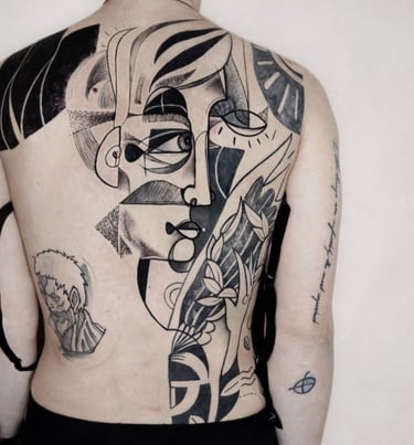 Matteo, tatuatore dall'arte raffinata e profonda, è attivo nella scena del tatuaggio dal 1995. La sua ricerca stilistica si snoda tra forme e simbolismi, dando vita a opere che non solo adornano la pelle, ma raccontano storie interiori e viaggi di scoperta personale. Dalla rappresentazione figurativa all'astrazione, ogni tatuaggio che crea è un intenso dialogo tra corpo e spirito, riflettendo un equilibrio perfetto tra estetica e significato. Ogni inchiostro che imprime è una testimonianza di esperienze vissute e di una continua esplorazione dell'anima umana, rendendo i suoi lavori autentiche opere d'arte in armonia con chi li porta.